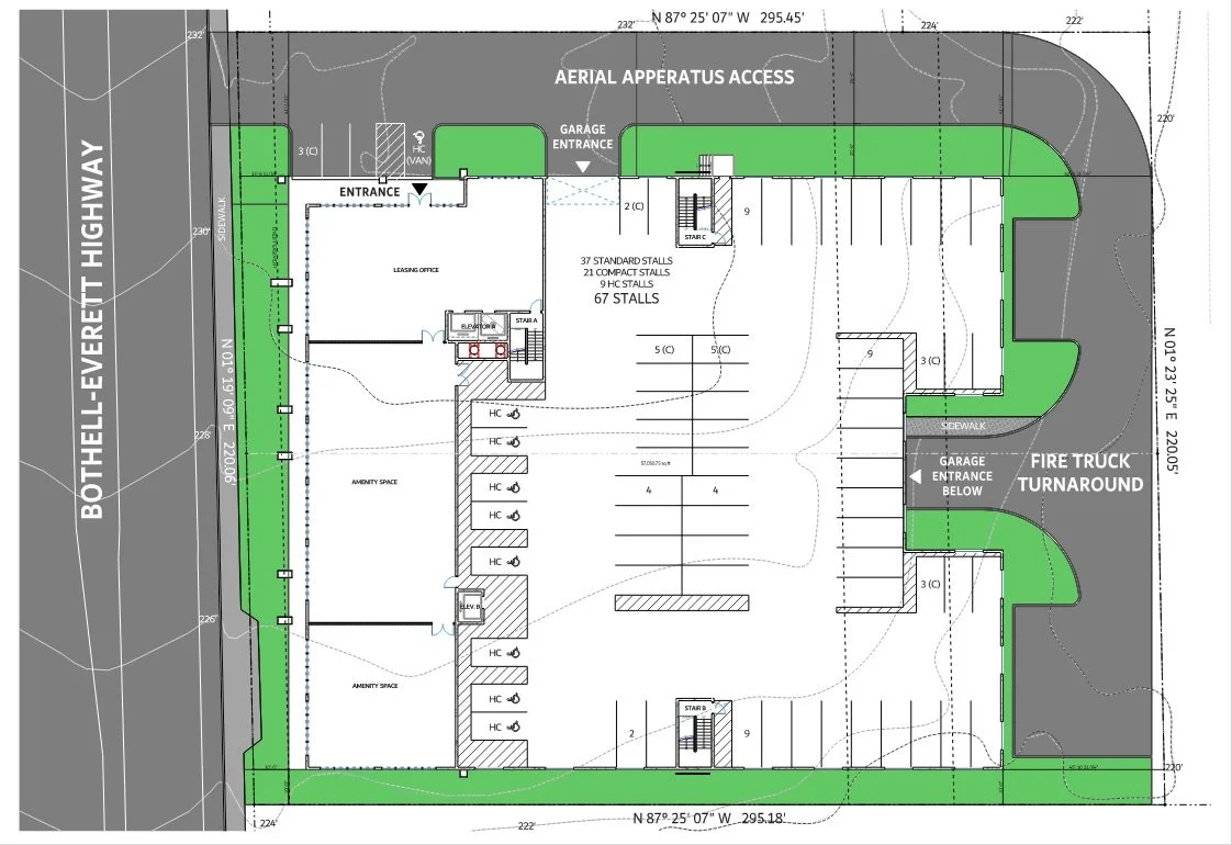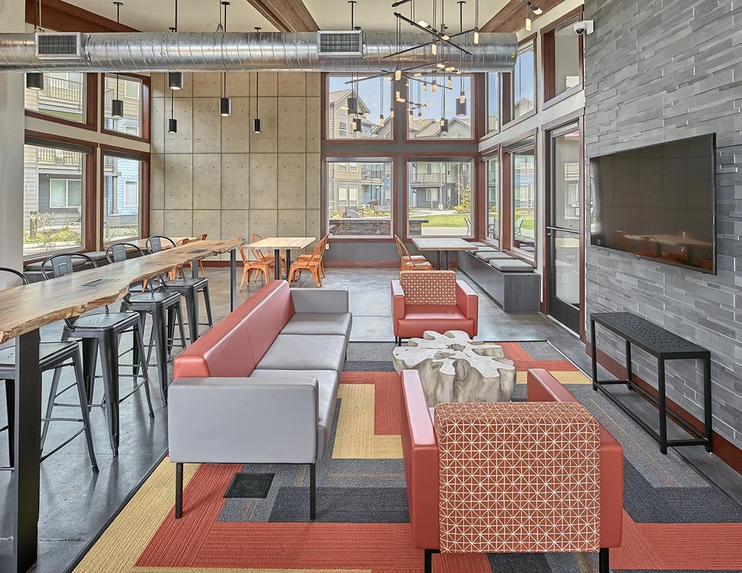 The Lodge Apartment project has been a huge undertaking. With 5 phases, this 32-acre site offers tremendous growth and living space to a rapidly growing area in North Marysville. Phases I - IV house 34 buildings, with 686 units and 3 large community amenity buildings. The Lodge is a high-density multi-family complex. We have designed these apartments using clustered buildings with centralized communal amenities to help create a community atmosphere within the development. These affordable apartment homes range from one-, two-, and three-bedroom units. The site is adjacent to Lakewood Crossing and conveniently located near the I-5 corridor.